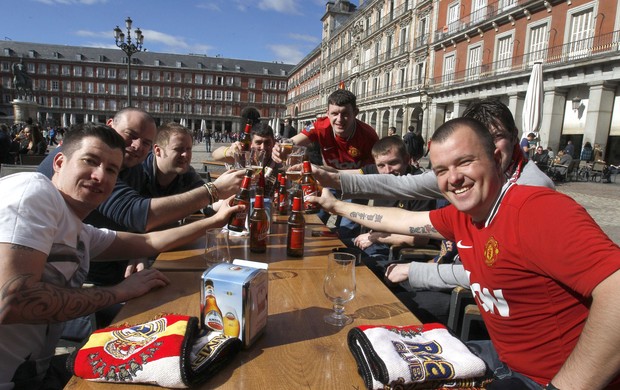 Torcedores dos Diabos Vermelhos fazem a festa pela cidade. A polícia não teve o trabalho que se esperava, porque os fãs do United queriam apenas cantar e beber muito sem causar problemas. A maioria chegou na manhã desta quarta na capital espanhola e reuniu-se na parte da tarde no centro da cidade: Praça Mayor e Puerta del Sol. Os comerciantes de Madri, é claro, agradeceram.